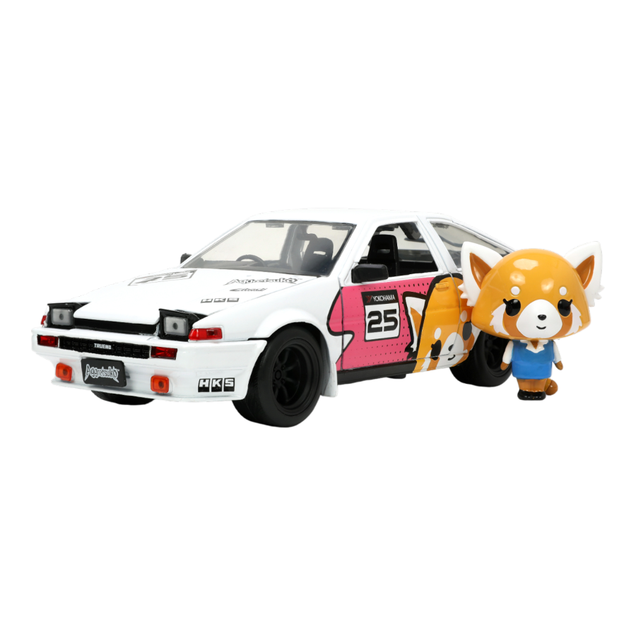 This mischievous little rascal is up to no good in her 1:24 Scale Hollywood Rides 1986 Toyota Trueno (AE86) Die-Cast Vehicle. A retro-style Toyota with colourful, trendy decos taken from your favourite anime series Aggretsuko. The perfect vehicle for the most iconic red panda.