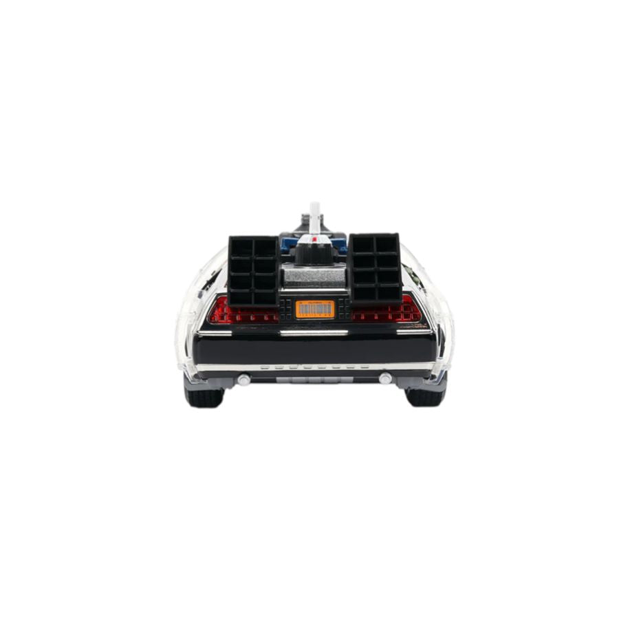 Featuring a die-cast body with premium chrome deco and screen-accurate detailing, this Time Machine includes rubber tires, detailed interiors, and opening gullwing doors. The hover-conversion wheels add an extra level of authenticity, capturing the look and feel of the iconic vehicle from the films.