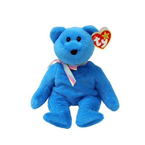 The original Beanie Baby - Teddy II the Blue Bear with pink scarf