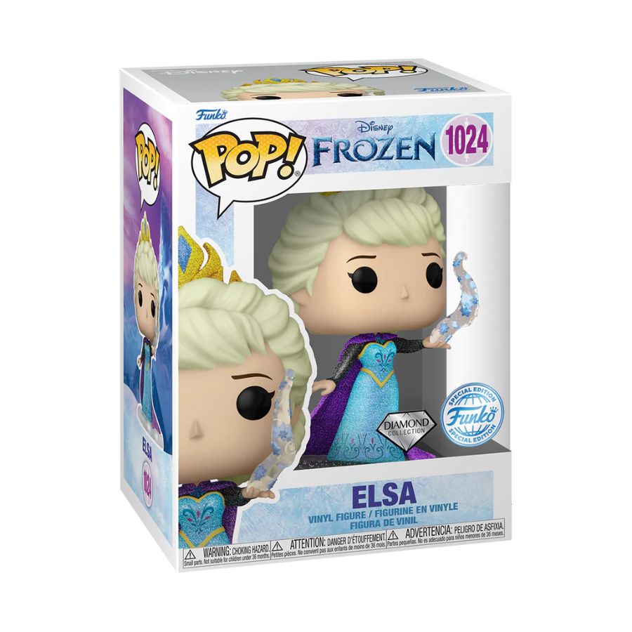 Disney is hosting the Ultimate Princess Celebration to inspire and empower you and your loved ones with stories of courage and strength. Complete your Disney Ultimate Collection with this exclusive, Diamond Collection Pop! vinyl Elsa with snowflakes. Her glittering coronation gown is sure to dazzle the rest of your Frozen collection. Vinyl figure is approximately 5-inches tall.