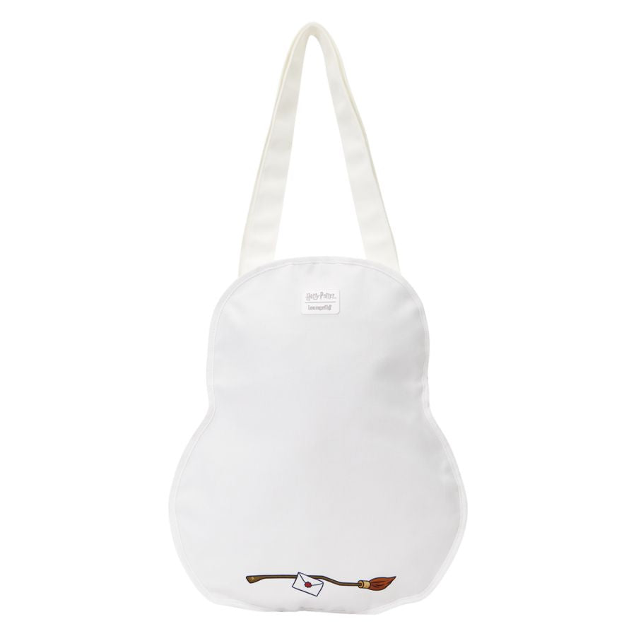 This canvas tote bag is in the shape of Hedwig from Harry Potter. The bag features printed details of Hedwig on one side. On the other side, you'll find the image of a broomstick with a Hogwarts letter. The bag zips open so you have plenty of space to hold your essentials and can zip up the bag to keep them safe!