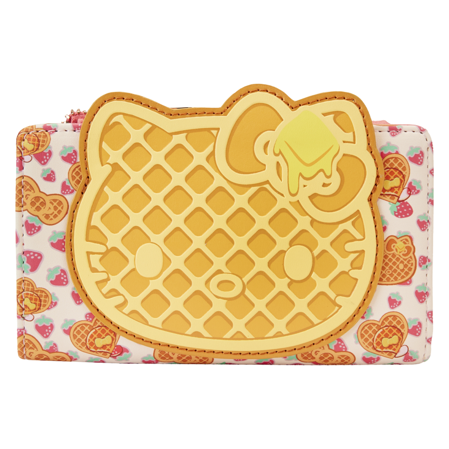 Mix up the recipe for a look that's too sweet to eat! The Loungefly Hello Kitty Breakfast Waffle Flap Wallet has transformed this adorable friend into a tasty breakfast treat. Taking shape on the front of the wallet, Hello Kitty appears as a waffle with a cube of butter on her bow. The rest of the design displays an all-over print of Hello Kitty-themed waffles on a background of super cute strawberries. Be careful not to drool as you sniff the wallet's waffle-scented details! Whether you're on your way to brunch or planning a home-cooked meal, this accessory is the perfect menu item for a fashionable serve.