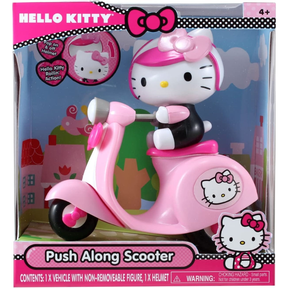 The Hello Kitty Push Along Scooter features an adorable Hello Kitty figure riding on her favourite scooter and ready for a fun day out.