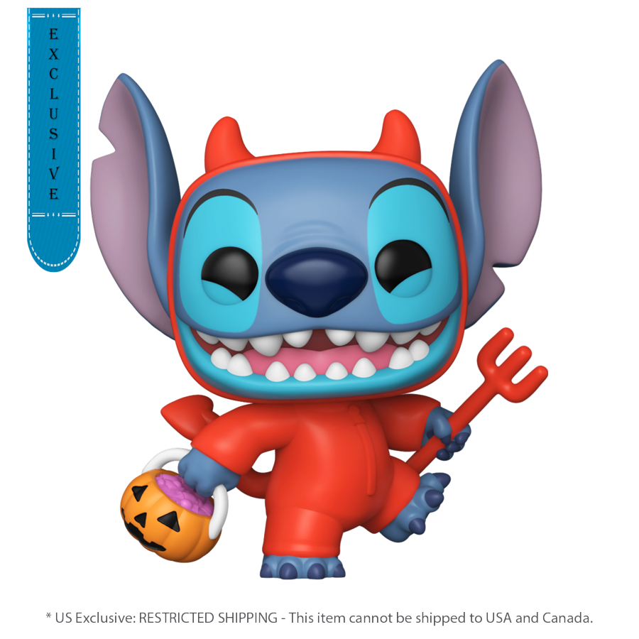 Get dressed up for a night of frightful fun with this exclusive POP! Devilish Stitch! Stitch dressed as the devil is ready for some trick or treat adventures.