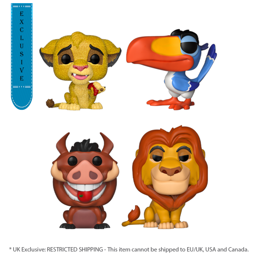 This future King of Pride Rock is accompanied by Pop! Zazu, Pop! Pumba, and Pop! Mufasa in this exclusive 4-pack.