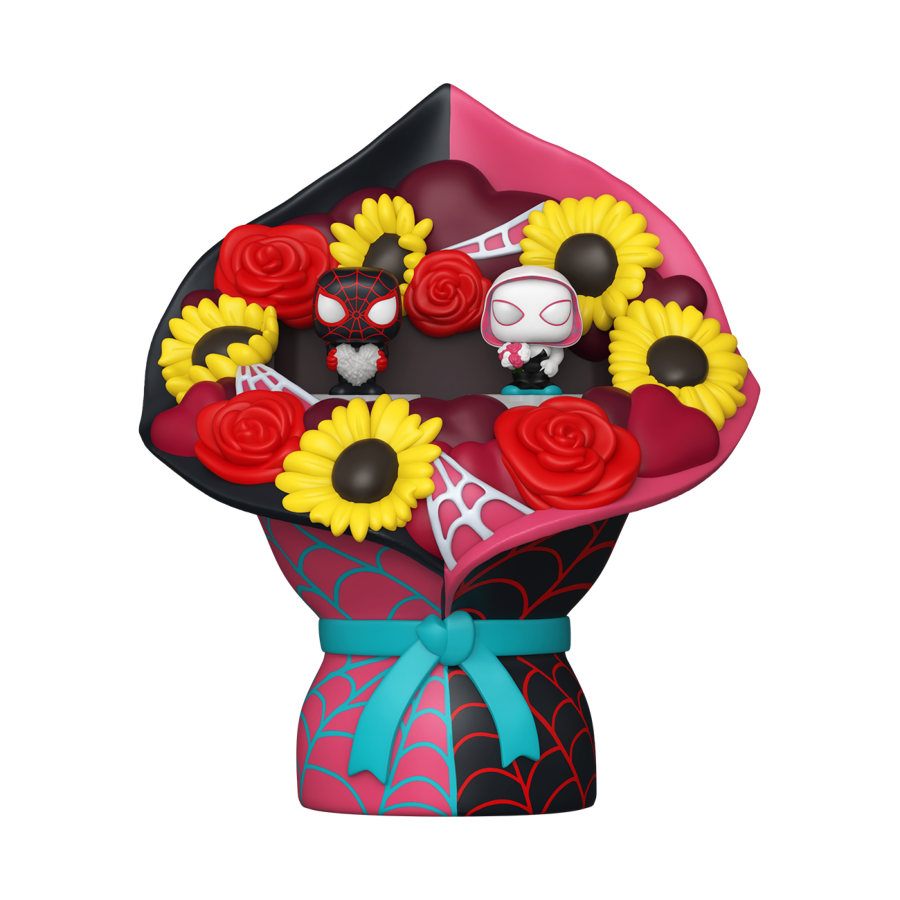 Expand your Marvel collection with this Bitty POP! Bouquet, featuring Bitty POP! Miles Morales and Bitty POP! Ghost Spider in an adorable Valentine's Day motif. The Bitty POP! Bouquet can display two Bitty POP! figures - mix and match with more of your favourite Bitty POP! characters for endless combinations!