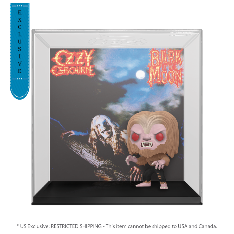 This exclusive Pop! Album features a flocked Pop! Ozzy Osbourne, as well as the cover art from his album Bark at the Moon!