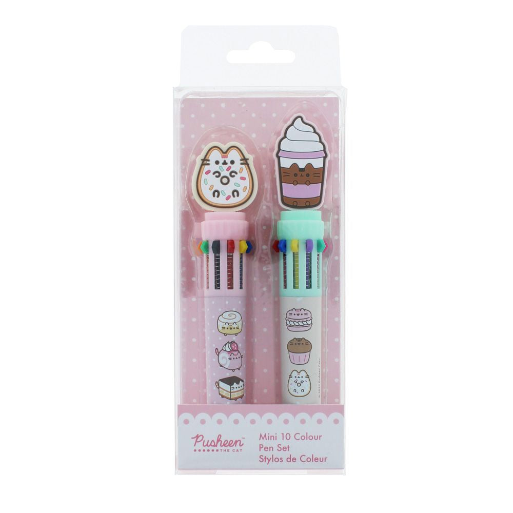 With chunky 3D toppers, this Mini 10 Colour Pen Set features 2 mini pens with Pusheen patisserie icon artwork. Presented in a clear acetate box with hangsell