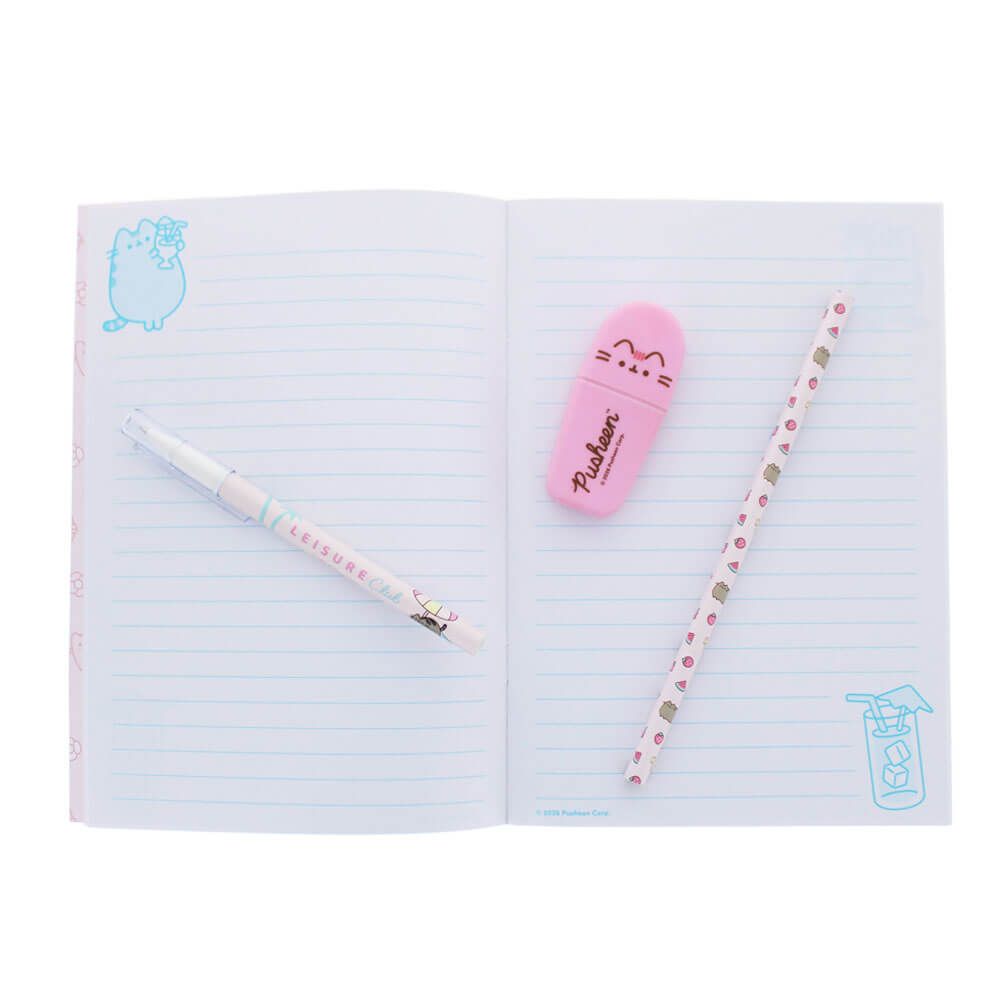 This 6-piece stationery kit comes in a reusable wallet and includes a pen, pencil, eraser, sharpener, stickers and a notebook - all styled with Pusheen’s vacation-ready look. The perfect gift set or back-to-school essential.