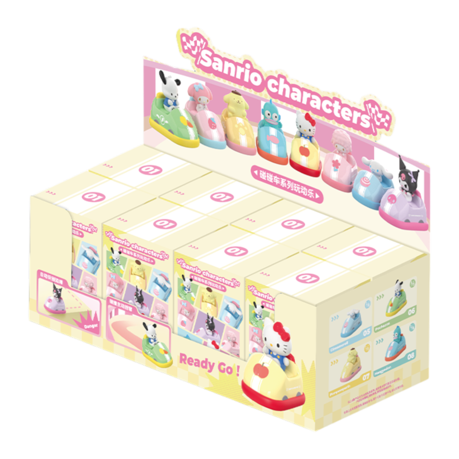 Hello Kitty and her friends are ready to have some fun in these cute bumper cars. See which character you will find with these mystery blind box.