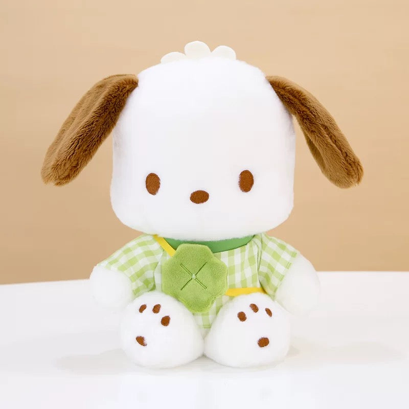 Pochacco 15 inch (approx 40cm) Mascot Plush with green checkered top and lucky clover crossbody