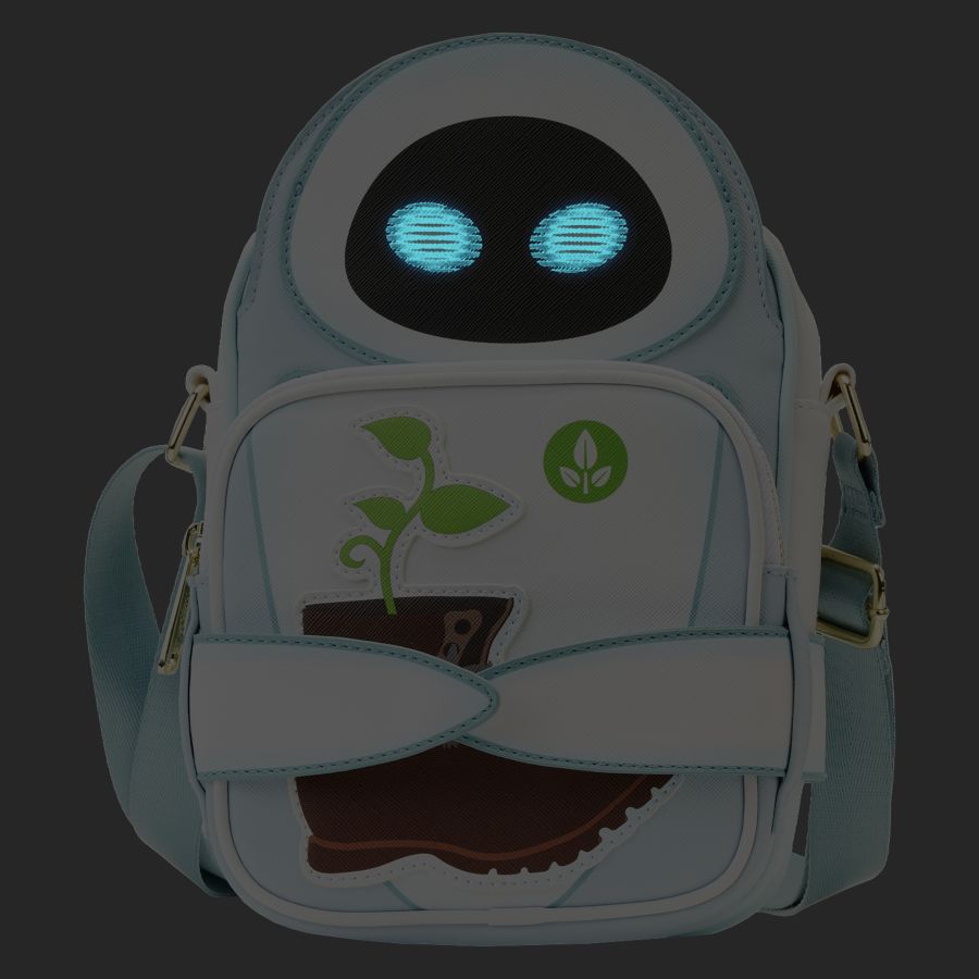 Show your love for WALL-E with this Wall-E Eve Date Night Glow-in-the-Dark Crossbody Bag!