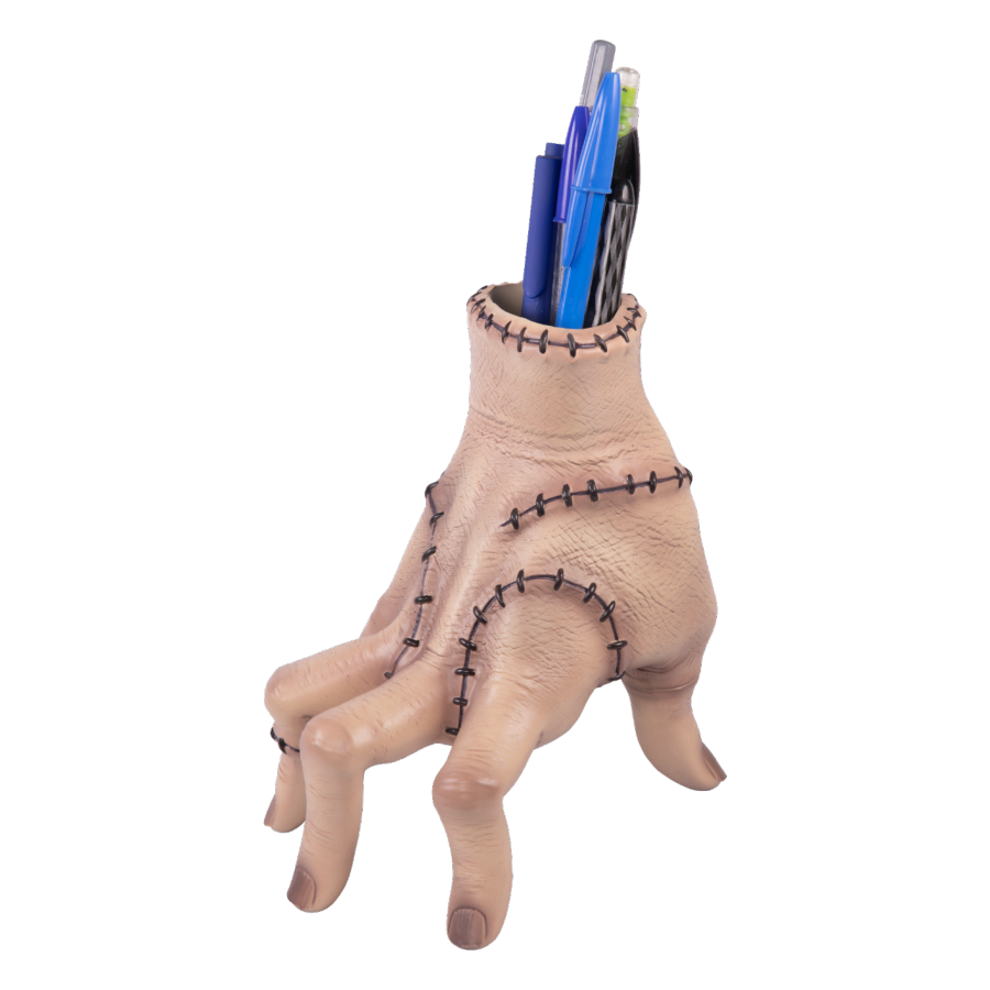 Crafted with attention to detail and a nod to the series' aesthetic, the Wednesday Thing Pen Holder is both functional and decorative. Its compact size makes it ideal for holding pens, pencils, or even makeup brushes, while its intricate design sparks conversation and intrigue. Whether you're a fan of the series or simply appreciate unique and eclectic decor, this pen holder is sure to make a statement, adding a dash of macabre flair to your workspace.