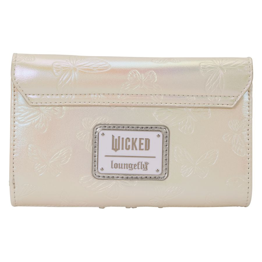 This gorgeous wallet purse is pearlescent with debossed butterflies and raised tonal embroidery of elegant swirls. On the front, you'll find a large butterfly with an enamel charm that has Glinda's silhouette within it! Open it up to find seven card slots and one clear ID slot. It's the perfect accessory to show off your love for all things Wicked.